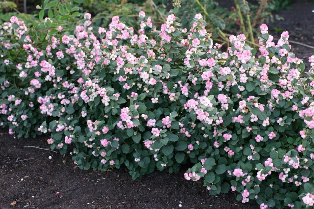 We Pinky Promise™ you’ll love this shrub! Symphoricarpos doorensbosii ‘Kolmpica’ USPPAF, CPBRAF. This Snowberry has gumball pink berries and rich mint-green foliage. Great compact habit. Excellent for containers and garden spaces! Zone 3. Grows to 3′ tall and wide. Part of the Bloomin’ Easy collection.